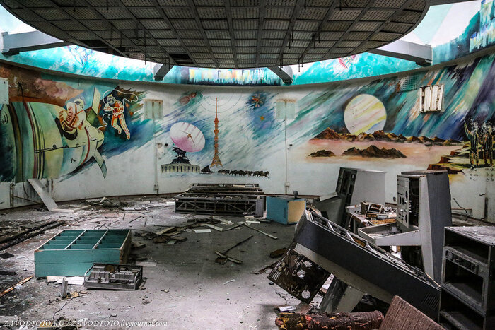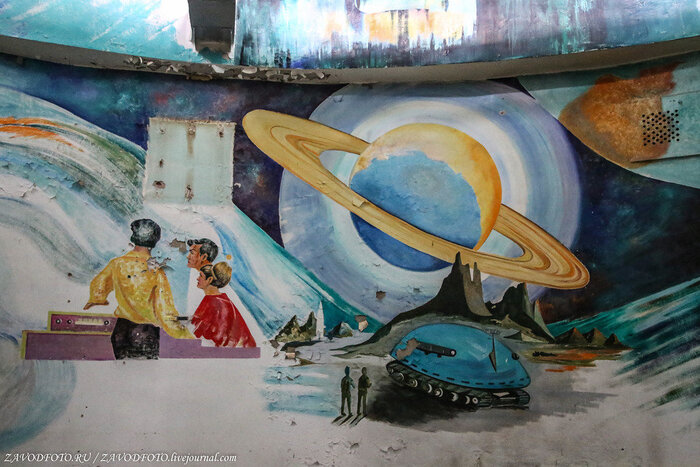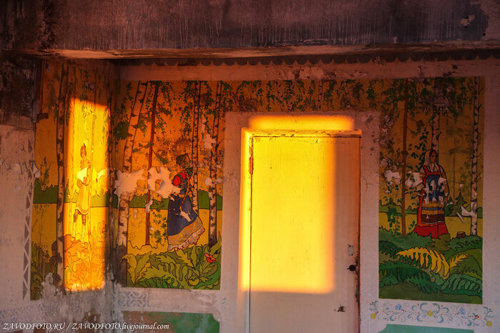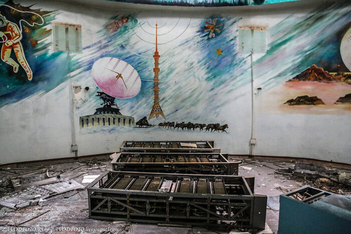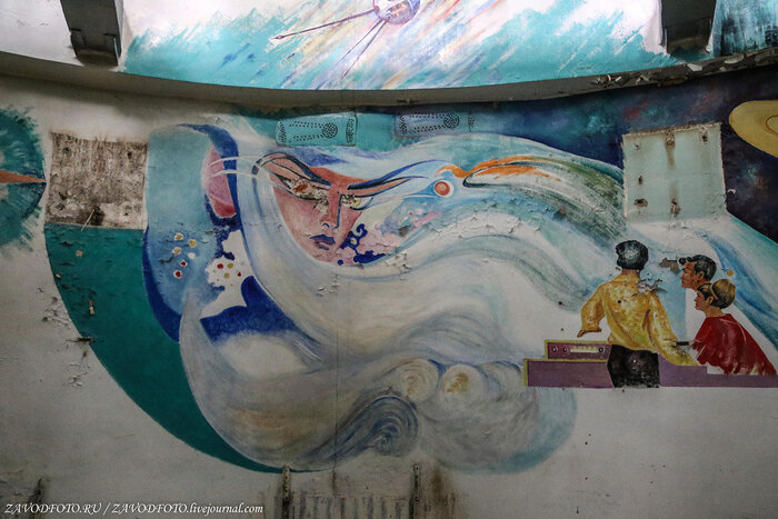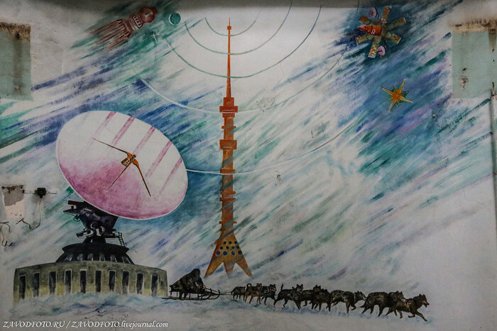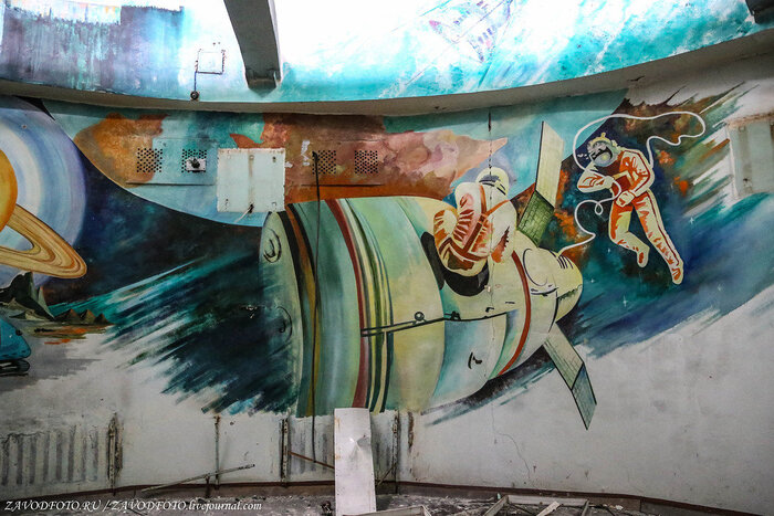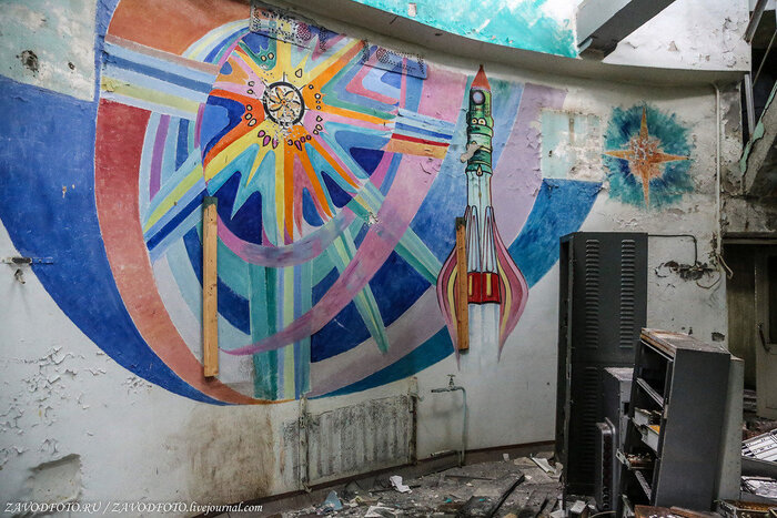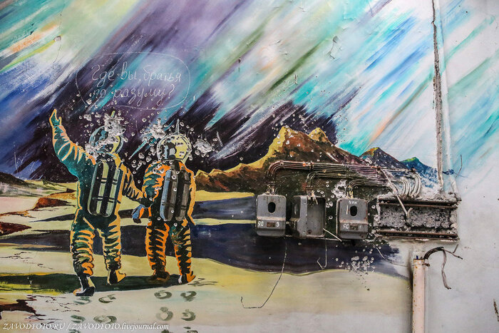 Сейчас здесь всё разбросано, вся техника разбита, ну хоть на стенах такую красоту пока оставили.