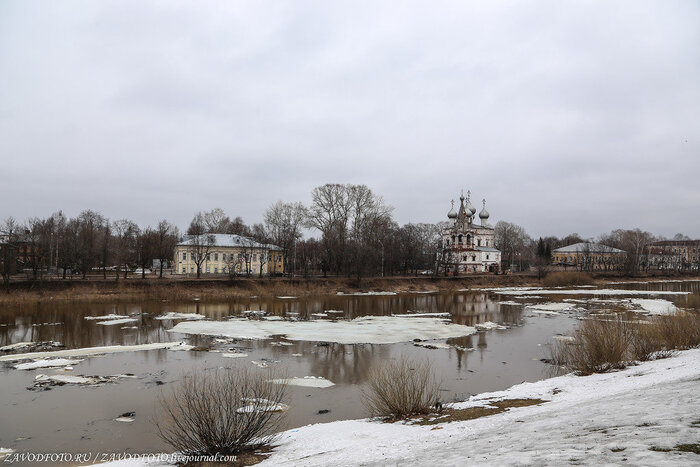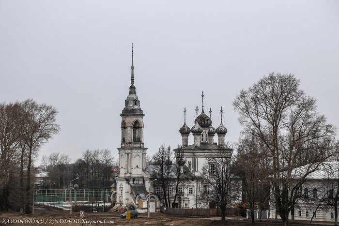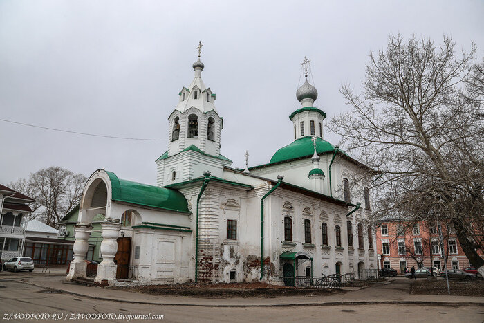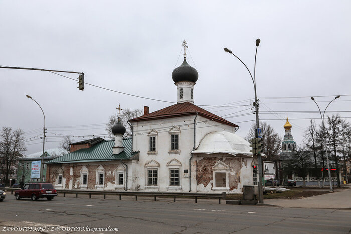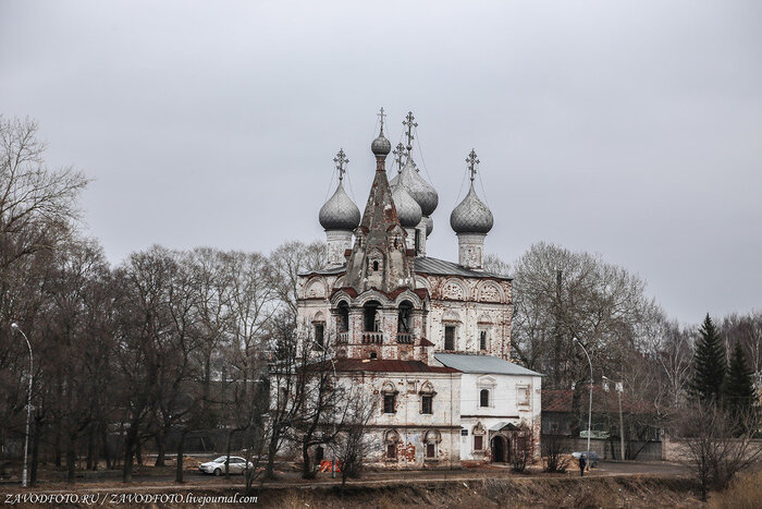Церковь Иоанна Златоуста - это одна из самых древних каменных построек на территории Вологды. Здание находится на набережные реки Вологда и прекрасно дополняет живописный пейзаж. Церковь Иоанна Златоуста также известна как Мироносицкая. Дело в том, что данная церковь – пример успешной реализации идеи северных мастеров по совмещению двух храмов в одном здании. Нижняя, "теплая" (или летняя) церковь использовалась в летнее время, а "холодная" церковь, расположенная на втором этаже, использовалась в зимний период. Собственно, один их храмов был освящен во имя Иоанна Златоуста, а второй – во имя праведных жен-мироносиц. Церковь Иоанна Златоуста - это стройная четырехстолпная церковь, увенчанная пятью куполами. Рядом возведена изящная колокольня, характерная для русской архитектуры XVI-XVIII веков. Церковь была закрыта сразу после революции и пришла в упадок.
