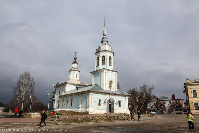 Храм святого благоверного князя Александра Невского на Кремлёвской площади. Основание храма, по свидетельству одного старинного сказания, относится ко времени царя Иоанна Грозного, а именно к 1554 году. В этом году, по преданию, в Вологду из Вятской области была принесена икона святого Николая Чудотворца Великорецкого. По этому случаю в Вологде во имя этого Угодника был построен новый деревянный храм, в котором была установлена святая чудотворная икона, однако первоначально месторасположение Николаевской церкви было иным. Деревянная церковь Николая Чудотворца сгорела во время сильного пожара в 1698 году. Год построения каменного храма точно неизвестен. Судя по его архитектуре, можно предположить, что храм возведен во второй половине XVIII века. В 1869 году в связи с приездом в Вологду Царя-Освободителя Александра II храм был переосвящен в честь небесного покровителя императора - святого благоверного князя Александра Невского – после чего состоялась его масштабная реставрация. В 1924 году храм был закрыт. В 1941-1945 годах в его здании располагалась воинская часть. После войны - управление «Главкинопроката». Позднее, до 1993 года - лыжный прокатный пункт. В 1997 году здание было передано православной общине.