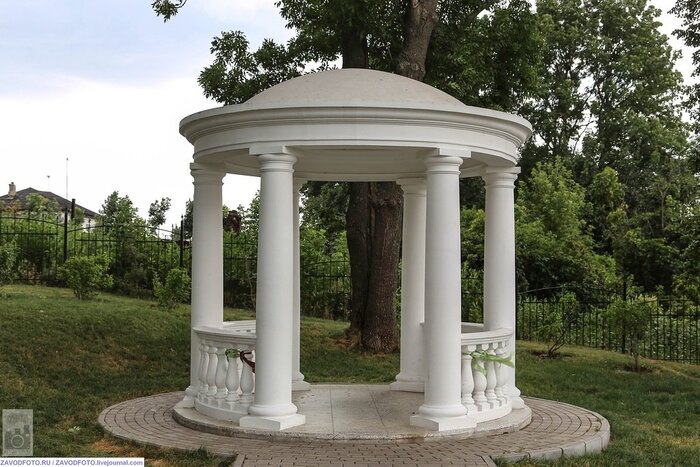 За домом располагался парк с системой аллей, плодовым садом и прудом. А центральная аллея, как и раньше, ведет к берегу Дона. Здесь же есть небольшая беседка-ротонда.