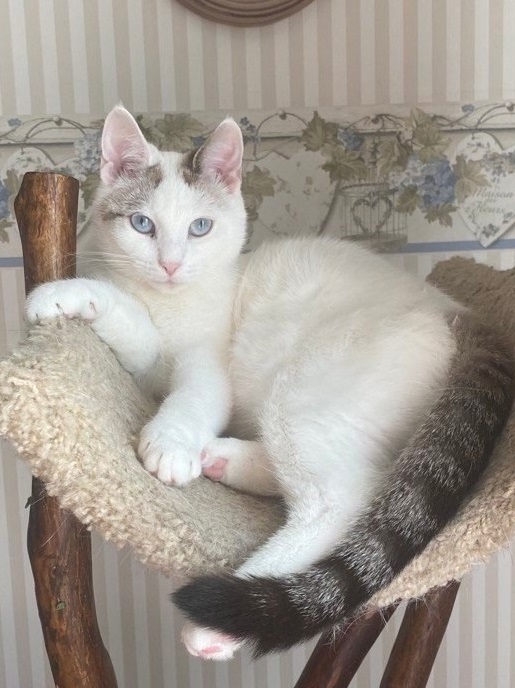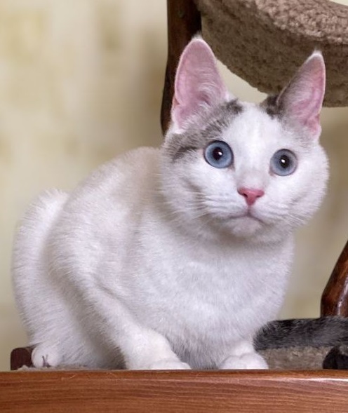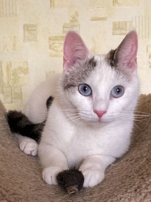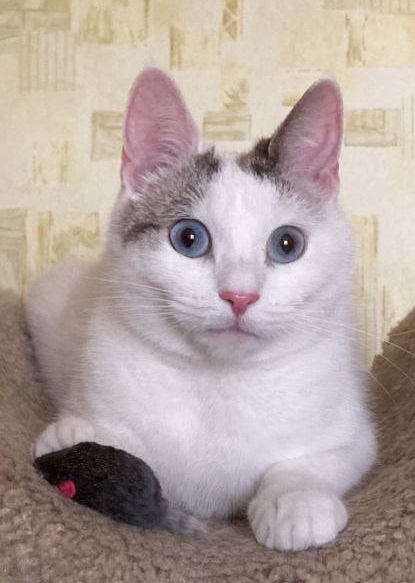 4. котёнок гладкошёрстный, серого окраса с рыжим ромбиком на лбу, возраст около 8мес.;