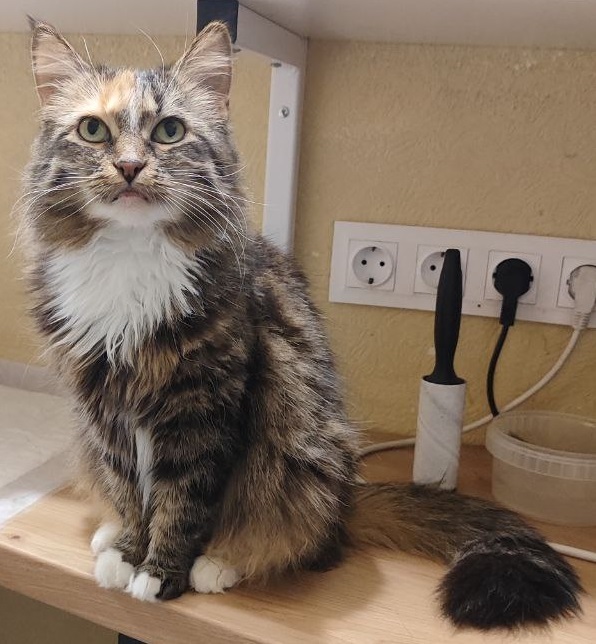 1. чёрная пушистая кошечка, очень красивая, около 3х лет;