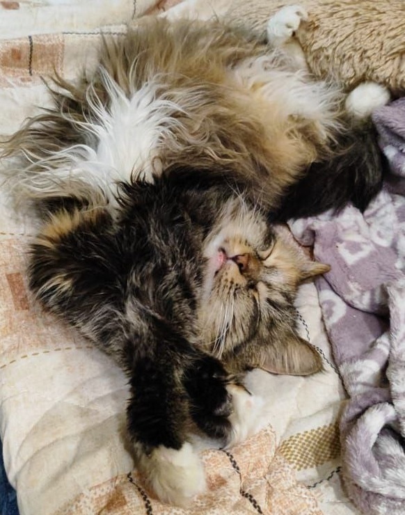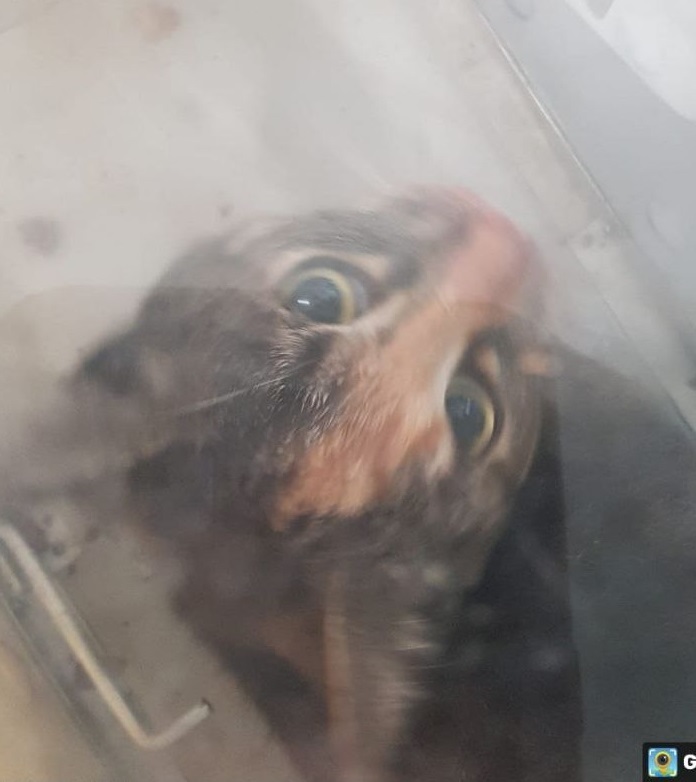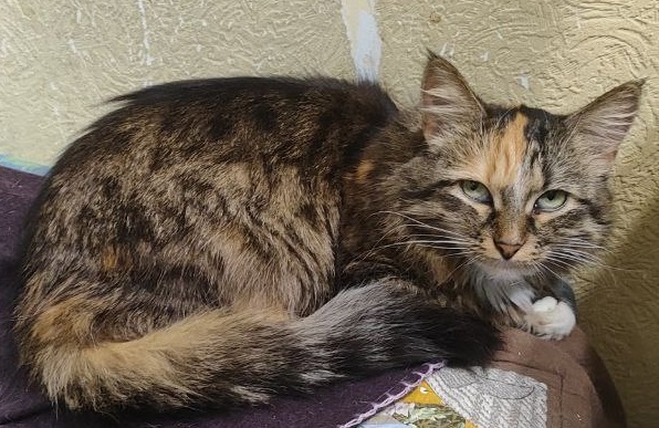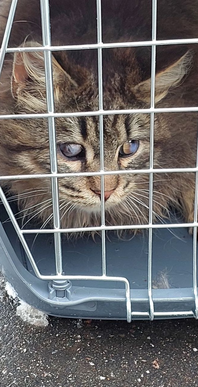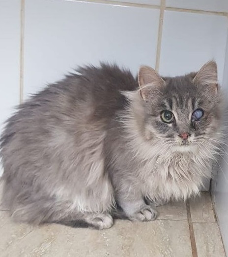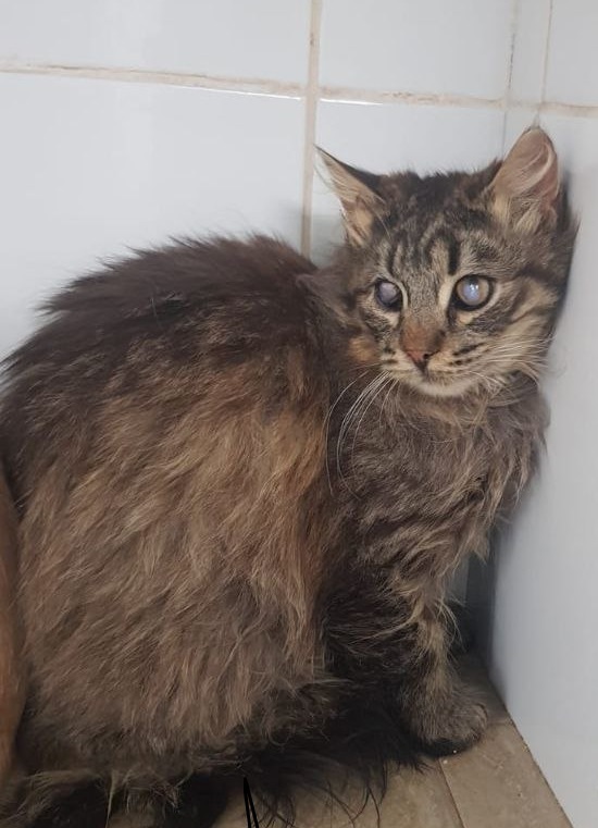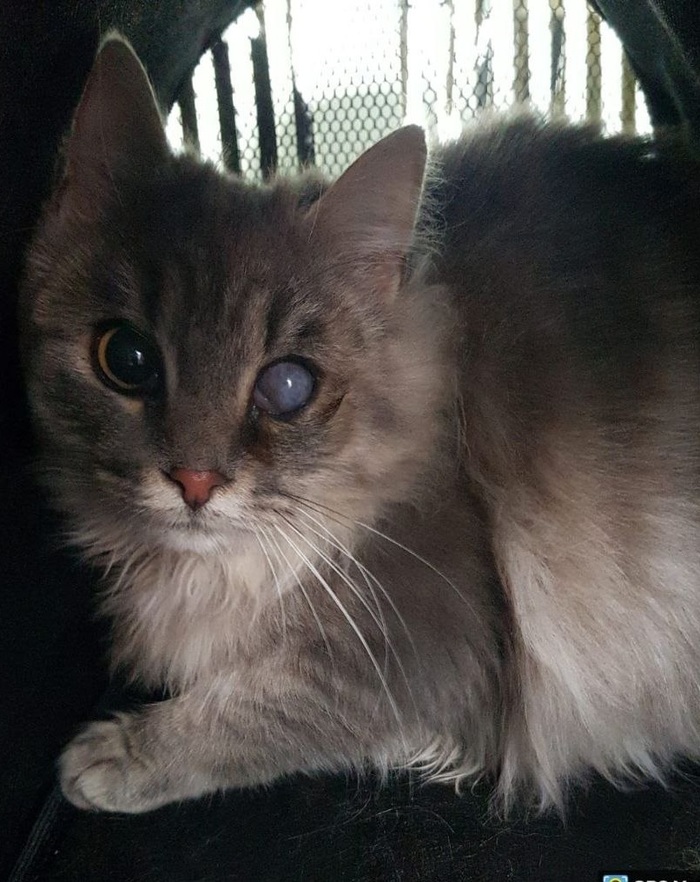 2. тёмно-серая пушистая кошечка до 8мес. с больными глазками;