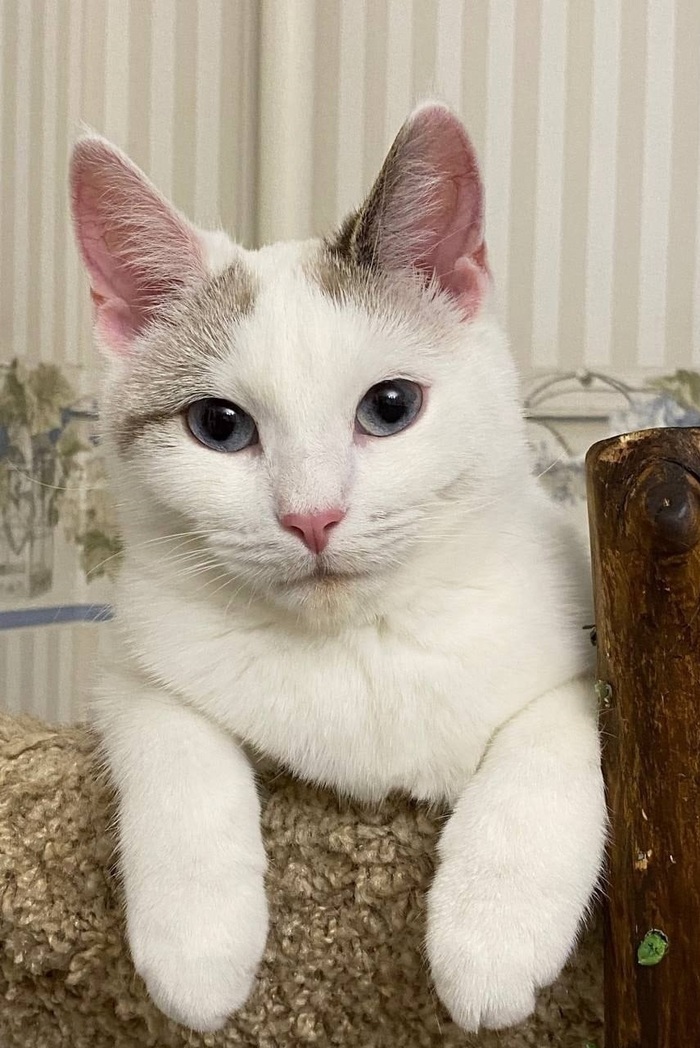3. светло-серая пушистая кошечка до 8м. с больными глазками.