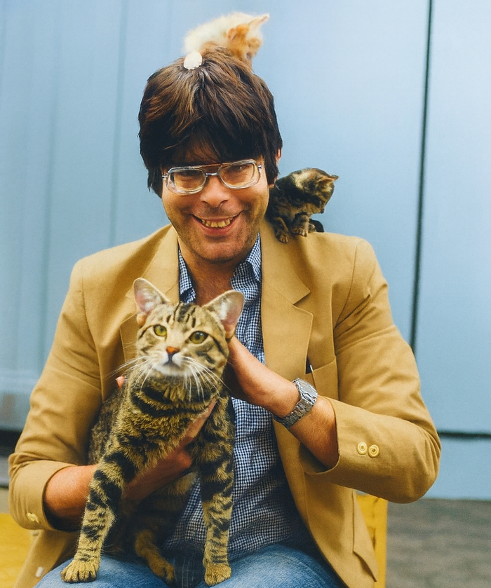 Снимок сделал Николай Петров в редакции «Известий» примерно в 1926–1927 годах. Маяковский здесь не позирует и не декламирует — просто стоит с кошкой на руках. На столе бумаги, за спиной мягкий свет редакции, вокруг привычная рабочая суета. Одно из немногих фото, где поэт выглядит не как символ эпохи.