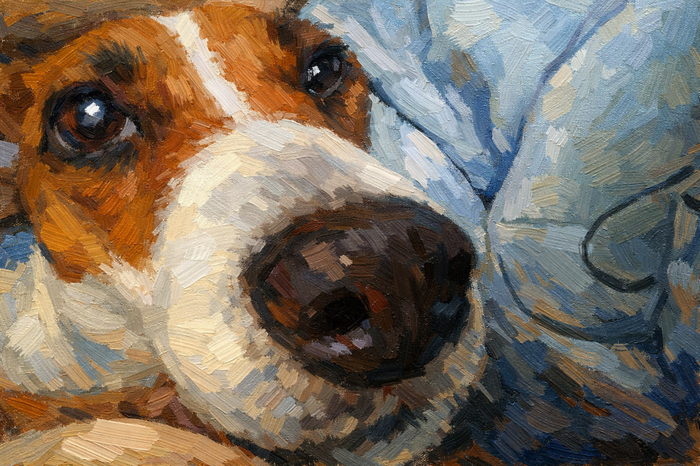 Третий заход, контрольный, на видео. Хозяин достаёт телефон, теперь я не просто собака, я кинозвезда. Честно говоря, это чуть-чуть волнительно. Хочется пробежать идеально, чтобы не опозориться перед камерой и перед всеми, кому потом покажут запись. Я снова выдыхаю пар из ноздрей и по команде срываюсь вперёд. Штурмую трассу как ветер. Прыжок, есть. Горка, взята, наверху ни секунды промедления, сразу вниз. Бум, взбегаю на него без заминки. Всё идёт как по маслу, даже снег не мешает. Я мчусь вперёд, а вокруг только белые хлопья летят из-под лап. Сердце стучит, кровь кипит, вот оно, счастье бежать напропалую. И вдруг финальный спуск с бума подводит. Кажется, я слишком разогналась. Передние лапы теряют сцепление, и я внезапно еду вниз на брюхе, как на санках. Уууух. Я молниеносно скольжу по доске. Шмяк, приземляюсь прямо в сугроб у основания препятствия. Моя морда зарылась в снег, торчат только лапы да хвост.