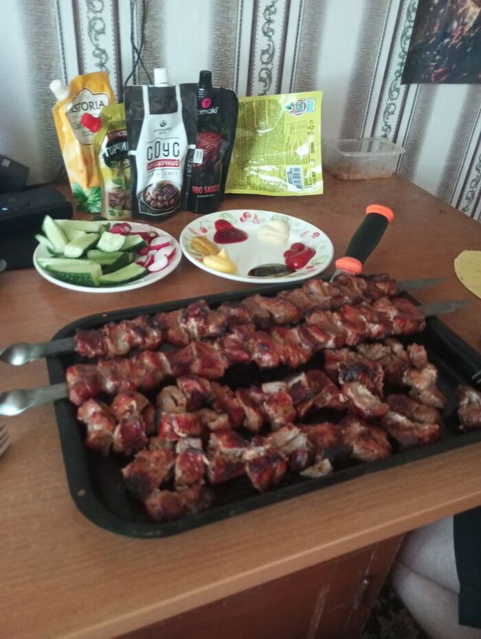 Шашлык очень сочный и потрясающе вкусный. Ну и десерт.