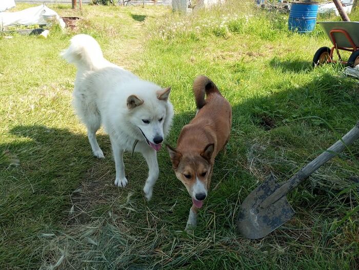 Ещё сегодня был первый раз, когда Петрович мылся в прохладной бане с шампунем для животных. Сушился на летней кухне у печки. Мы готовим его к поездке, а потому надо избавляться от запахов вольной таёжной жизни :) После водных процедур Петровичу пришлось сесть на цепь, потому что кое кто очень любит рыться в земле и бегать по грязи. Перед самым отъездом предстоит ещё один этап очищения.