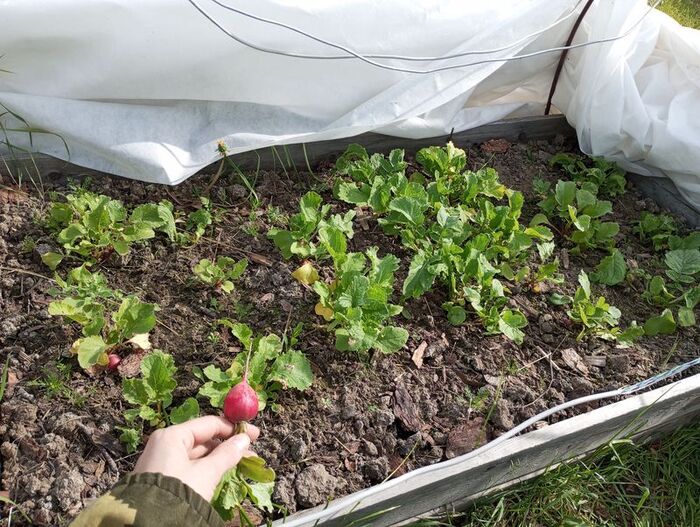 На нашем домашнем огороде выросла редиска. Так приятно собирать что-то, самолично посаженное.