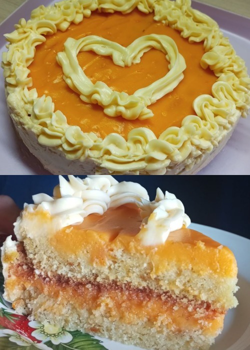 Апельсиново-лимонный бисквит с апельсиново-лимонным курдом. Для украшения сгущенка с маслом сливочным. Готовила по этому рецепту: