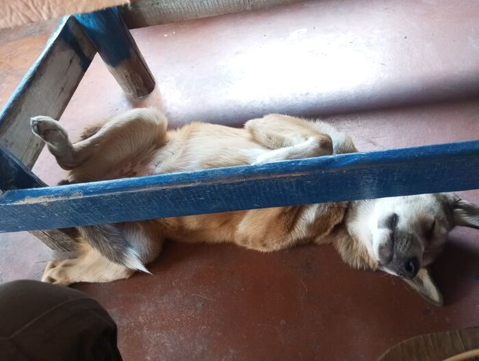 Тут он абсолютно счастливый спит на летней кухне последним теплым днем перед прохладой и дождями.
