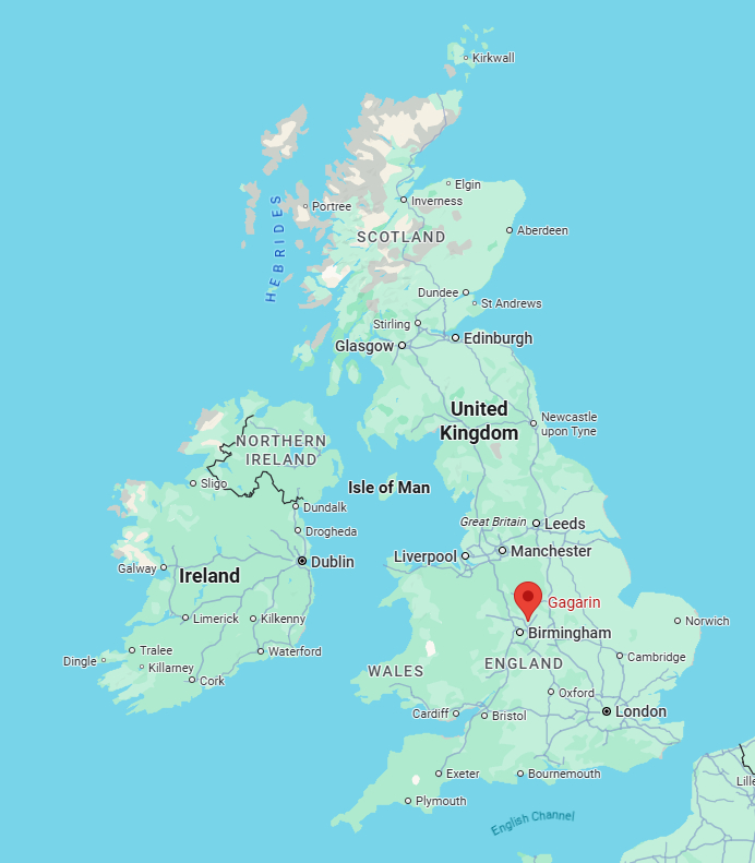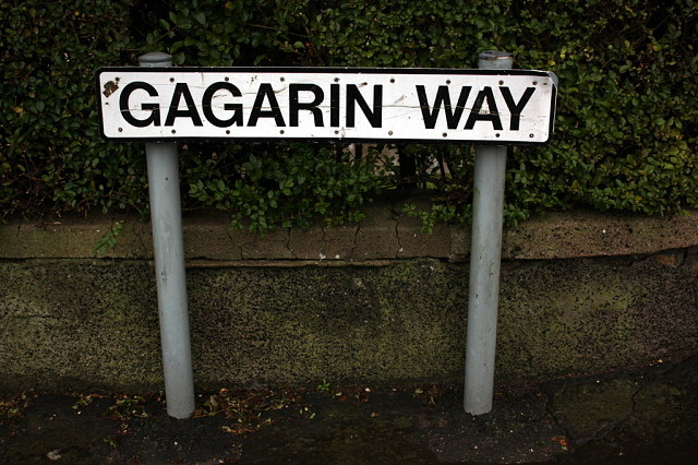 Tamworth, Staffordshire, Gagarin, что интересно без приписки street, way или ещё чего, просто Гагарин, там же находится одноимённая остановка, а к гагарину примыкают улицы Apollo и Mariner, обе представляющие миссии НАСА.