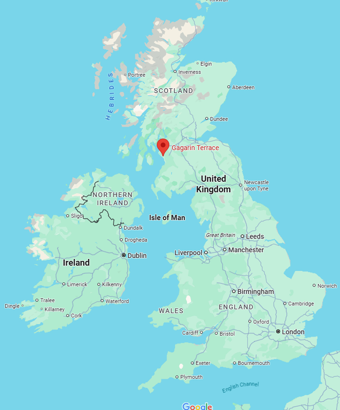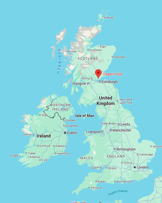 Gagarin Way, в принципе можно перевести как Путь Гагарина, в Lumphinnans, Шотландия, простите, но некоторые названия даже не хочется пытаться произносить, не то, что кириллицей писать.