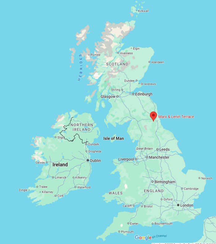 Marx and Lenin Terrace, Chopwell.Чопвелл тоже известен как "маленькая Москва". Нормальных картинок не нашёл, даже гугл мапс не помогли, тут не очень хорошо с табличками с названиями улиц.