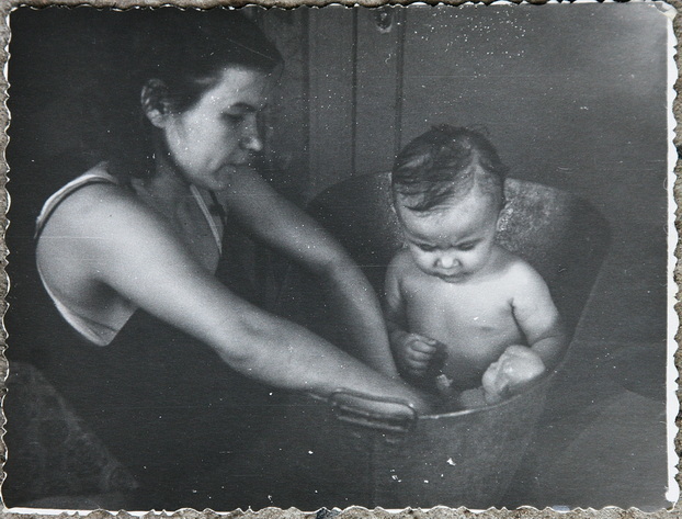 А тут мама меня купает. Кто застал такие цинковые корыта для купания детей?