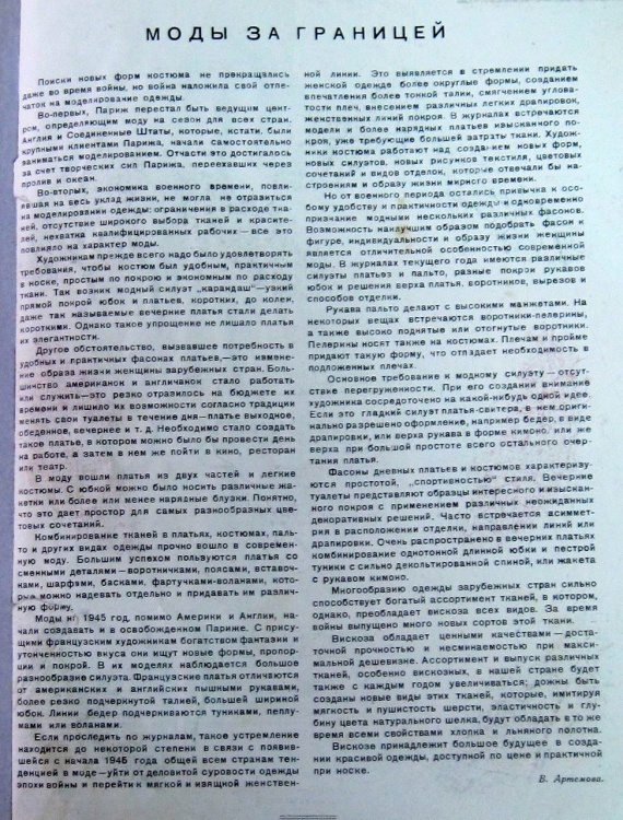 Уникальный номер советского «Журнала мод» послевоенной страны. Уже в то время, люди следили за новинками, стараясь выглядеть достойно. И ходили не только в фуфайках, валенках “на босу ногу” и в шапках ушанках…