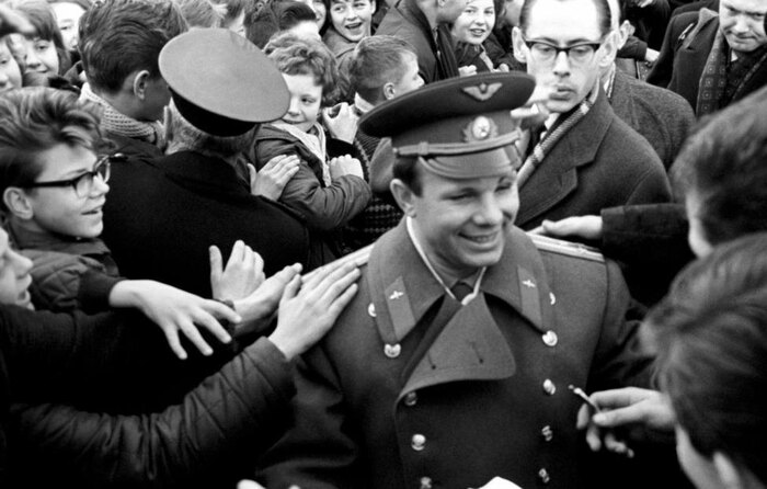 В этом же и эффект закономерной гагариномании: «на руках весь мир его носил» © (первое фото - Франция, к слову).