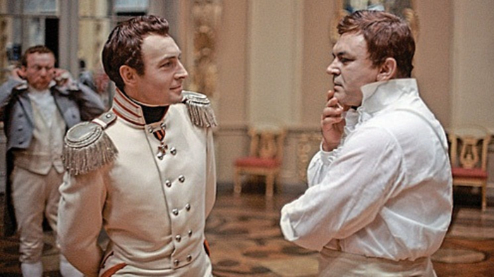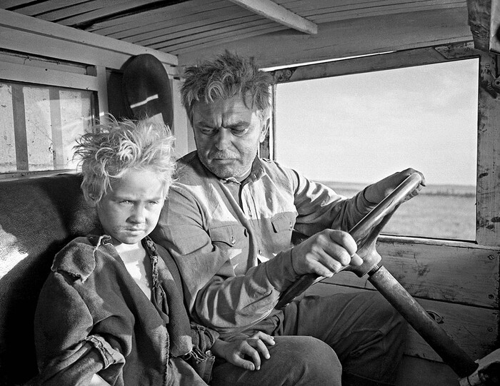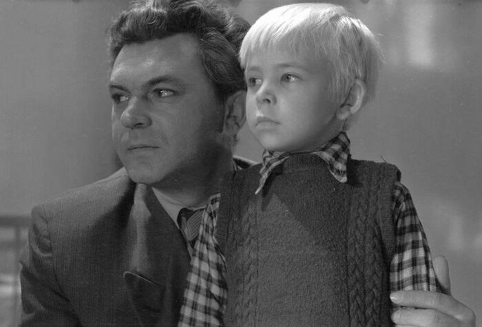Юный Никита Михалков с режиссером Сергеем Бондарчуком на пробах фильма "Война и мир", 1 февраля 1964