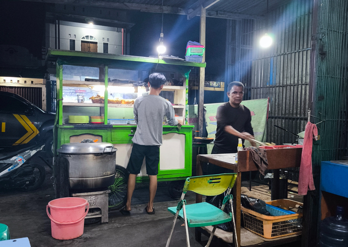 Нас встретил классический индонезийский прилавок, где пара человек творит уличную магию — из ничего делает что-то, чем и кормит всех.