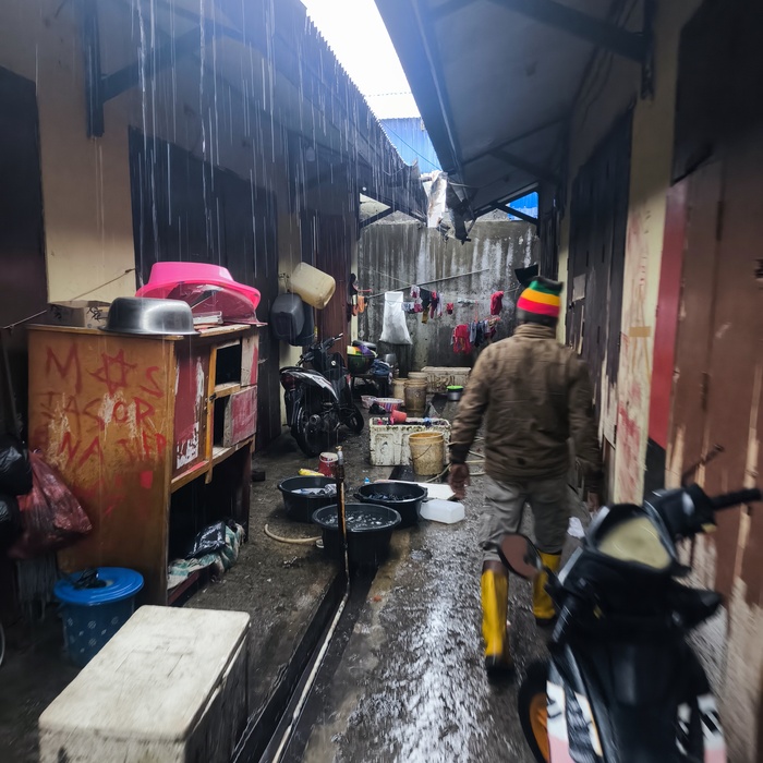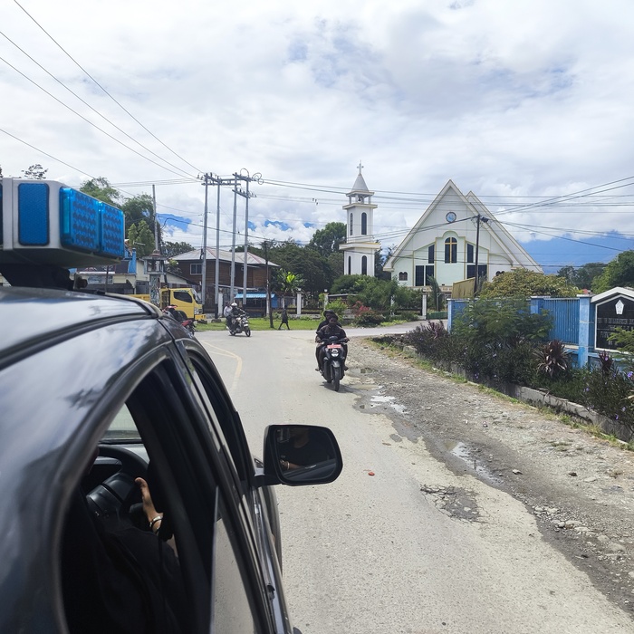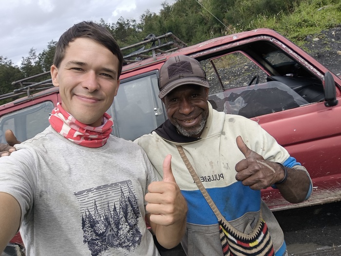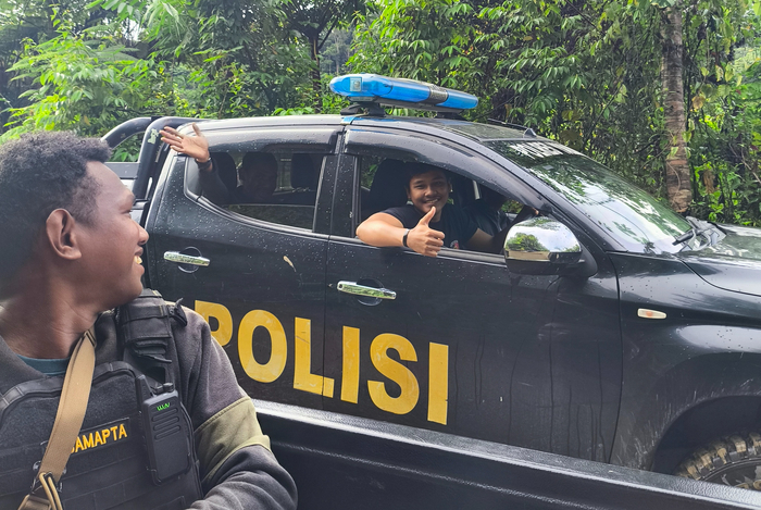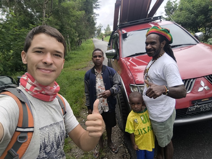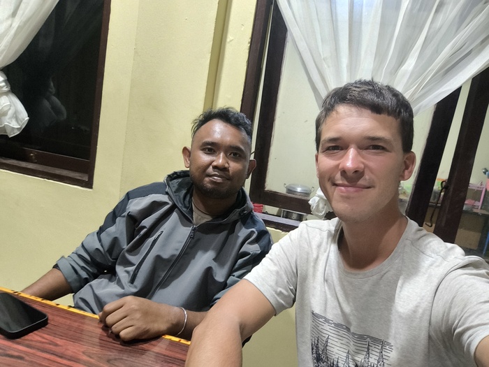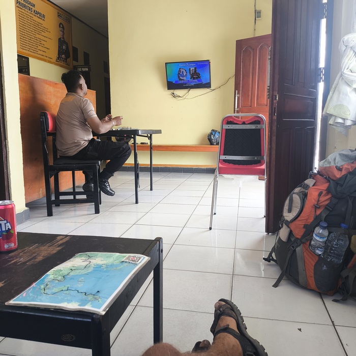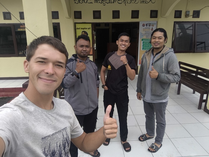 Меня передали в полицию — «друзьям». Объяснили, что мне нужно где-то переночевать... Меске не возражал, напротив — предложил воды и место у телевизора. Позже подошли Агус и Адри, куда более любознательные: расспросили меня о дороге, не было ли проблем по пути из Джаяпуры. Если не считать бездорожье — всё прошло как по маслу.