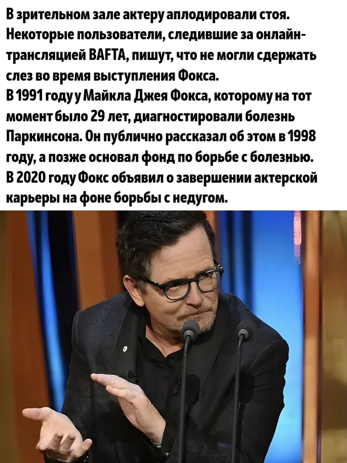 3939 BAJANNN Всё о кино Серия Знаменитости и кино 2 Марти 1 год назад Дополнение к посту: Держись Майкл Показать полностью 3 Майкл Джей Фокс Актеры и актрисы Знаменитости Картинка с текстом Болезнь Паркинсона Bafta Из сети Длиннопост 117 35 4 4 2 Ещё 0