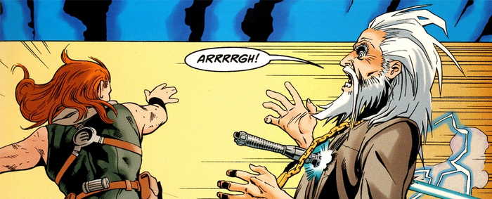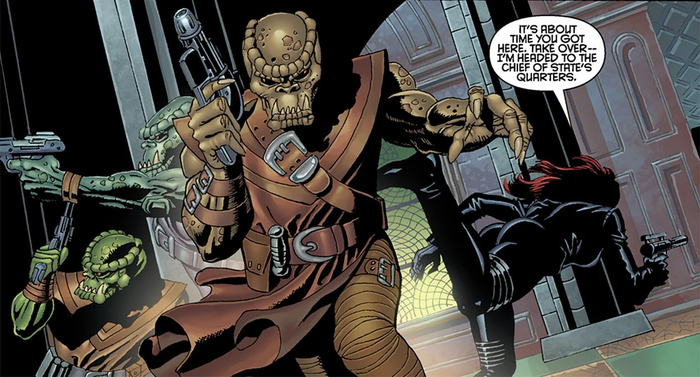 А потом всё - на яхту Джаббы её не пустил как подозрительный элемент, а дальнейшее мы знаем из кино. Она провалила задание и вернулась к Палычу, чтобы и дальше резать криминалитет. Так прошло ещё около года. В какой-то момент, находясь в отпуске за примерную работу, Мара вдруг поняла, что последнее дело не завершено, и вместо криминального босса она завалила двойника. Надо было посоветоваться с боссом, но когда она позвонила ему по телепатическому силовому каналу, то услышала что-то типа: