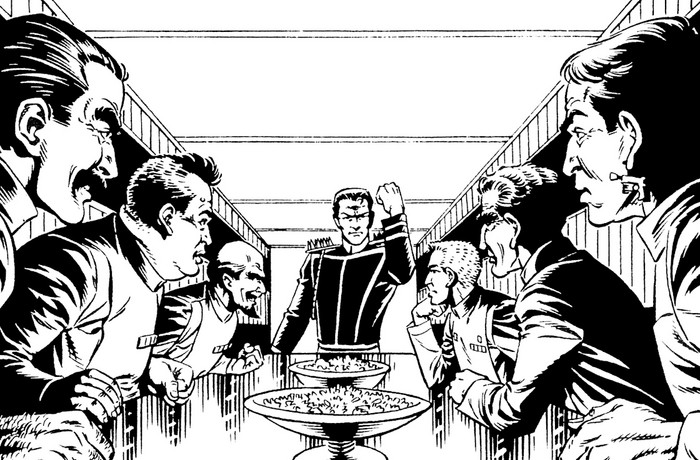 Оказалось, что в так называемых Неизведанных регионах Галактики жизнь не только есть, но она ещё и довольно активная. В частности, раса разумных ящеров Сси-руук, которая как раз и напала на Бакуру. Поскольку Ссы-в-руки выросли на очень небогатой ресурсами планете, то в качестве источника питания они использовали...живые существа, и желательно крупных, типа людей.