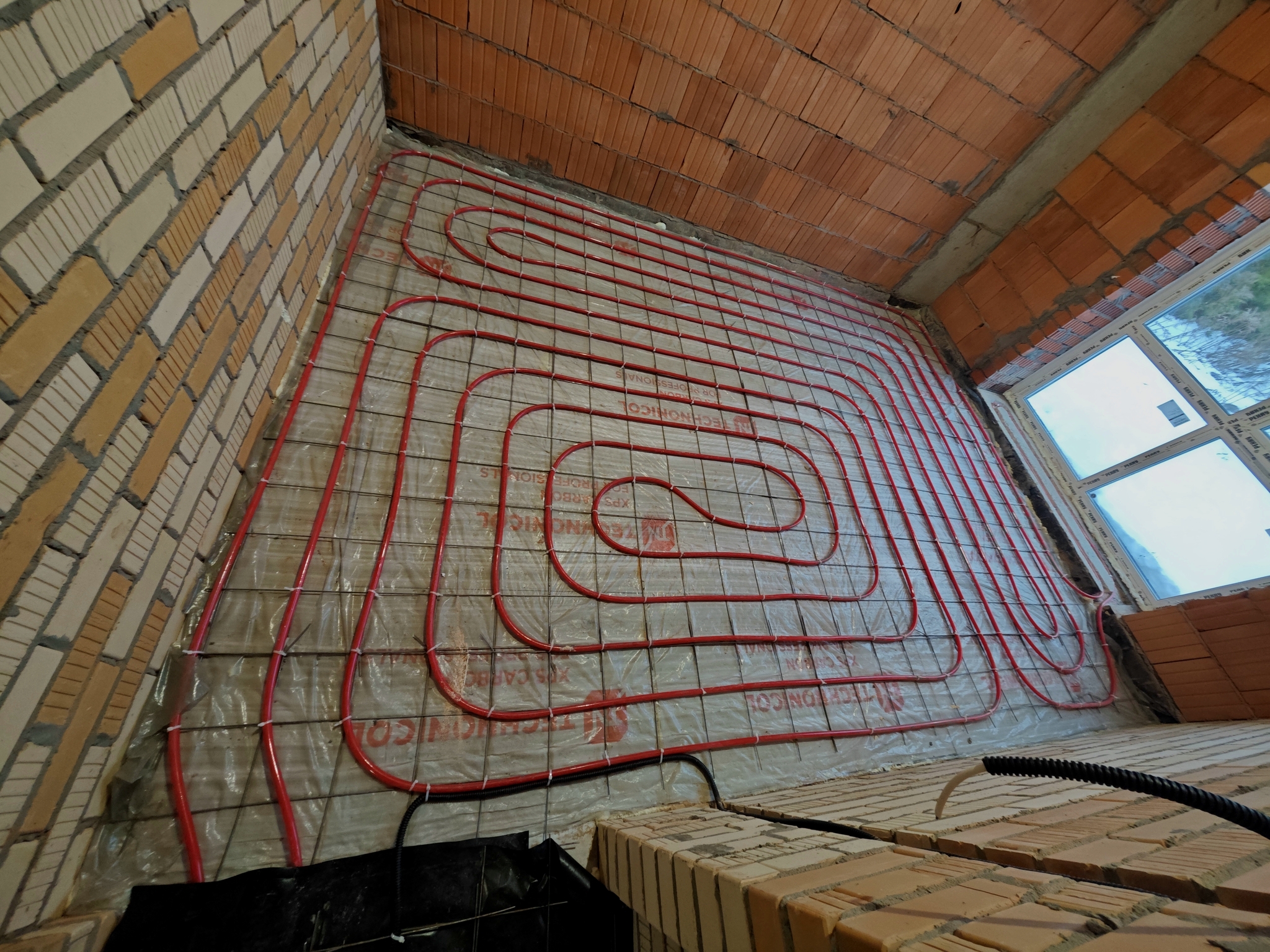 Выполнена разводка трубопроводов канализации, отопления и водоснабжения в доме площадью 180кв.м. Котельная будет во второй части.