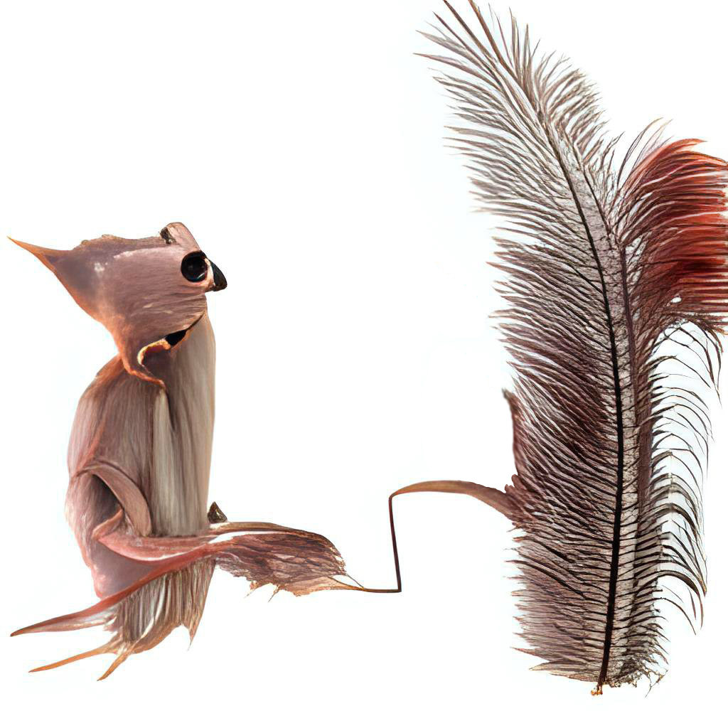 Очевидно далее я должен описать его конечности. И если с левым обрубком всё понятно, то описать его правый манипулятор, начинавшийся с выгнутой вверх дуги плеча, вылезавшего из нагромождения боковых складок и сочленяющегося с выгнутой вниз дугой предплечья, переходящего одновременно вперёд, в сплюснутую ячеистую кисть и назад, в красный пульсирующий отросток, протягивающийся за его спину, образовывая третий шип, связанный перепонкой с его, простите, дном... И это я ещё даже не приступил к описанию его грандиозного двухметрового тактильного пёрышка, вырастающего из перепончатой кисти через изогнутое в виде вывернутой тонкой буквы Z сочленения.