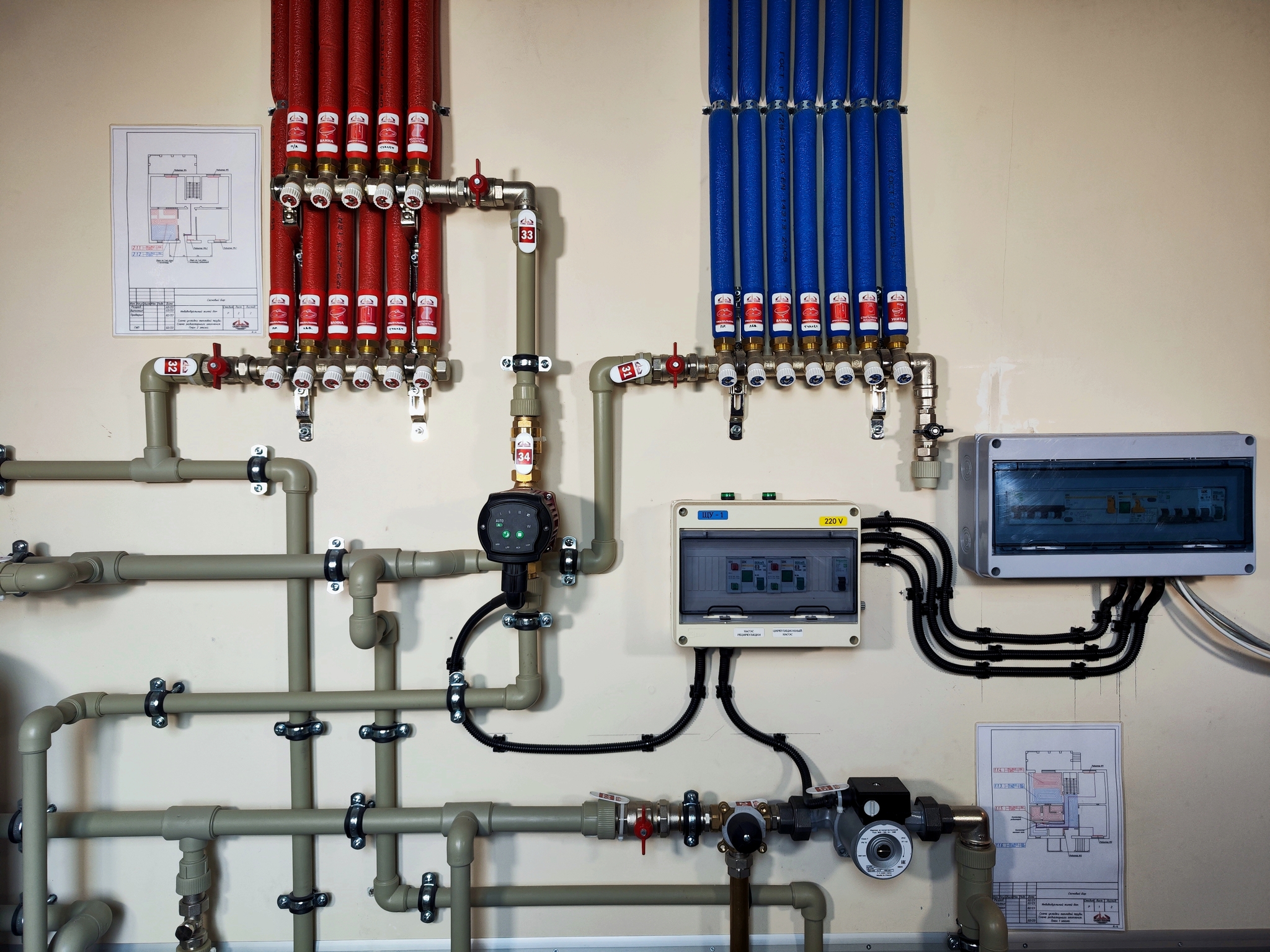 Электрику в доме выполнил сам до нашего выхода, а в котельной после нашего ухода, - черные провода и все щиты на фото его рук дело.