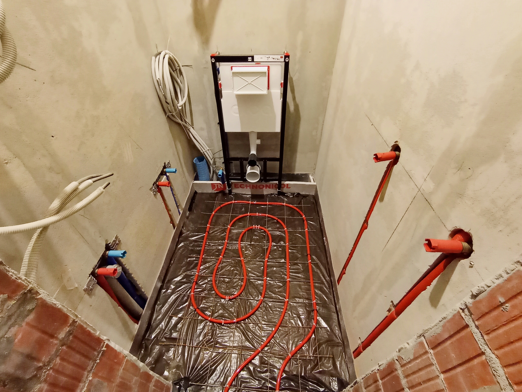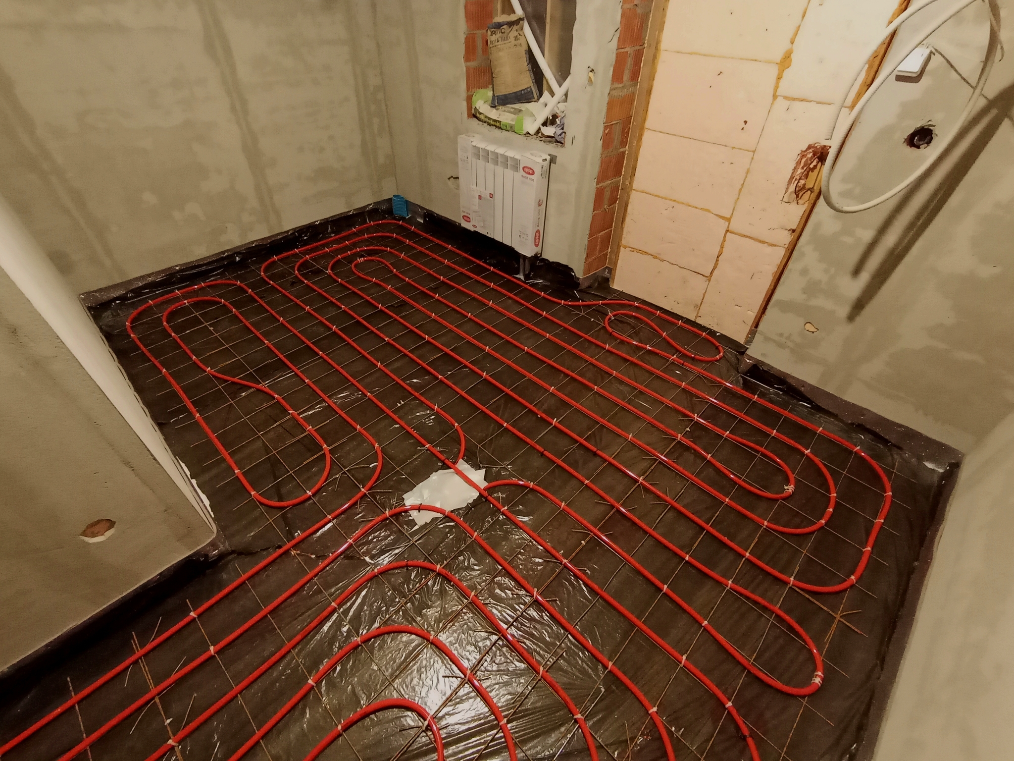 Монтаж трубопроводов в пеноплексе на 2 этаже здесь - 25 декабря 2024 года.СОЙКИНО, 2 этаж, монтаж трубопроводов под стяжкой теплого пола в пеноплексе