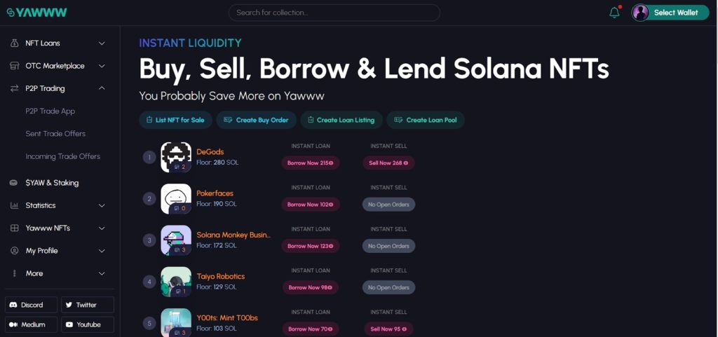 Первые задатки отказа от оплаты роялти появились на P2P маркетплейсах, особенно популярен среди них стал yawww. Они давали возможность торговать NFT напрямую между пользователями, а владельцы коллекций с этого ничего не получали.
