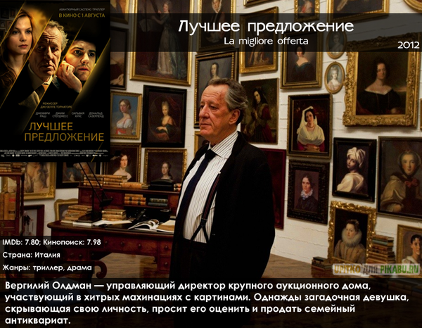 Этот итальянский фильм режиссера Джузеппе Торнаторе объединил в себе великолепных актеров — Джеффри Раша, Джима Стёрджесса и до этого не очень известную Сильвию Хукс. Триллер получился очень изящным, красивым и атмосферным, став настоящей находкой не только для обычных зрителей, но и для профессиональных критиков.