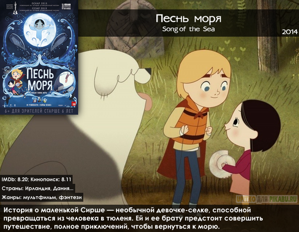 Этот добрый, красивый и атмосферный мультфильм с волшебной музыкой способен окунуть вас в невероятный мир мифов Ирландии. Трогательный и светлый, он, наверняка, запомнится и останется в вашем сердце надолго.