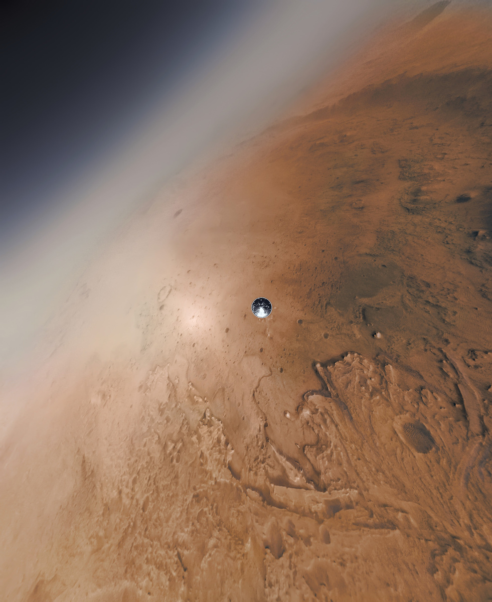 Несмотря на разреженность марсианской атмосферы, без теплового щита не обойтись / © NASA/JPL-Caltech/Simeon Schmauß/AndreaLuck/TheSpaceway