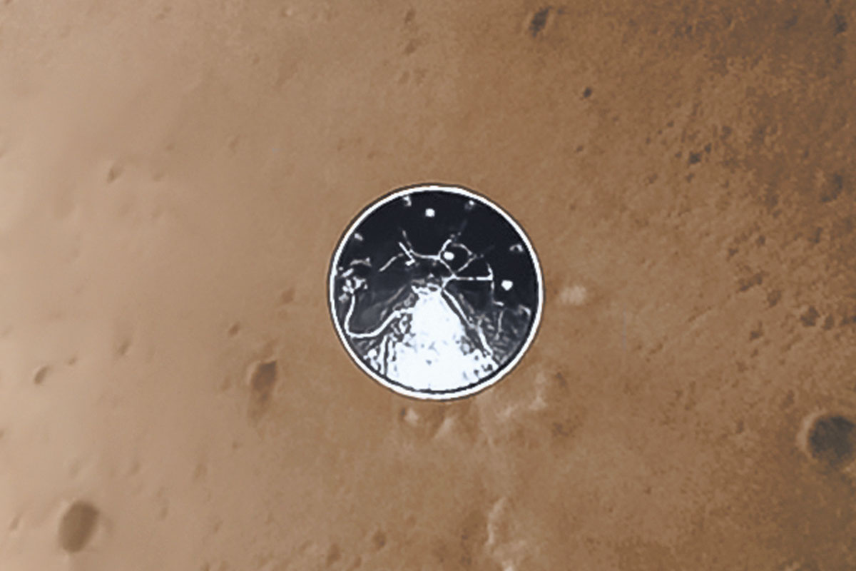 На снимке можно увидеть удивительную деталь — серебристый диск, падающий на поверхность Марса. Это тепловой щит, который подобно верному стражу защищал Perseverance во время спуска через атмосферу Марса, когда температура вокруг марсохода достигала экстремальных значений.