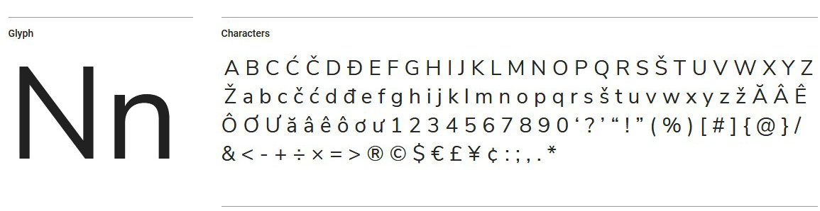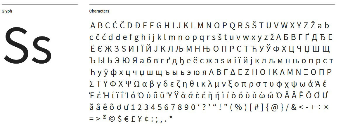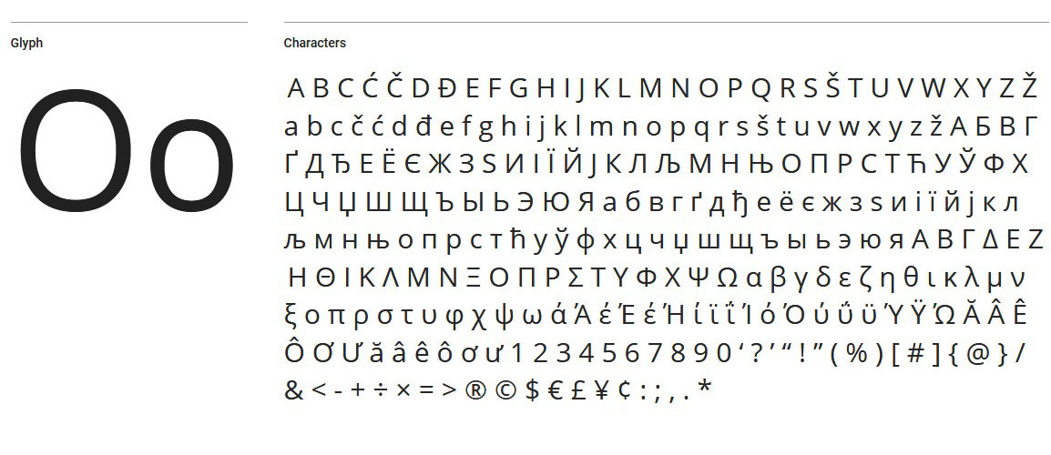 Шрифт класса гротеск, относится к стилю «без засечек». Дизайнер сделал рисунок букв плавным и широким. Символы подойдут для заголовков, выделения интересных моментов в основном тексте. Гарнитура призвана работать в пользовательских интерфейсах и имеет открытую лицензию. Из плюсов: проработаны символы для латиницы, кириллицы и некоторых азиатских языков.