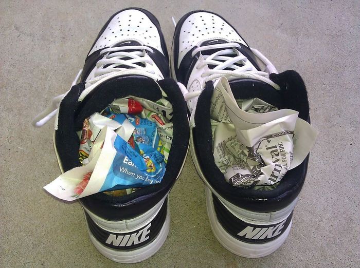 Это сейчас об электрических сушилках для обуви знают все, а вот 20 лет назад о них никто, ничего не слышал. Советские граждане запихивали в носок обуви газеты, которые замечательно впитывали ненужную влагу. При необходимости газеты меняли.