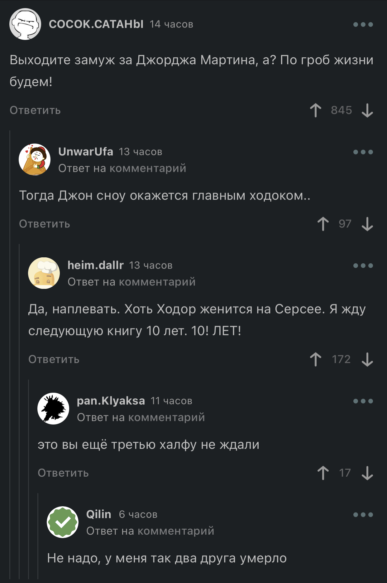349 CrUsHmAx 3 года назад 10 лет ожидания… #comment_245068815 Юмор Игра престолов Джон Сноу Half-life 3 Джордж Мартин Комментарии Скриншот Комментарии на Пикабу 2 2 Ещё 0