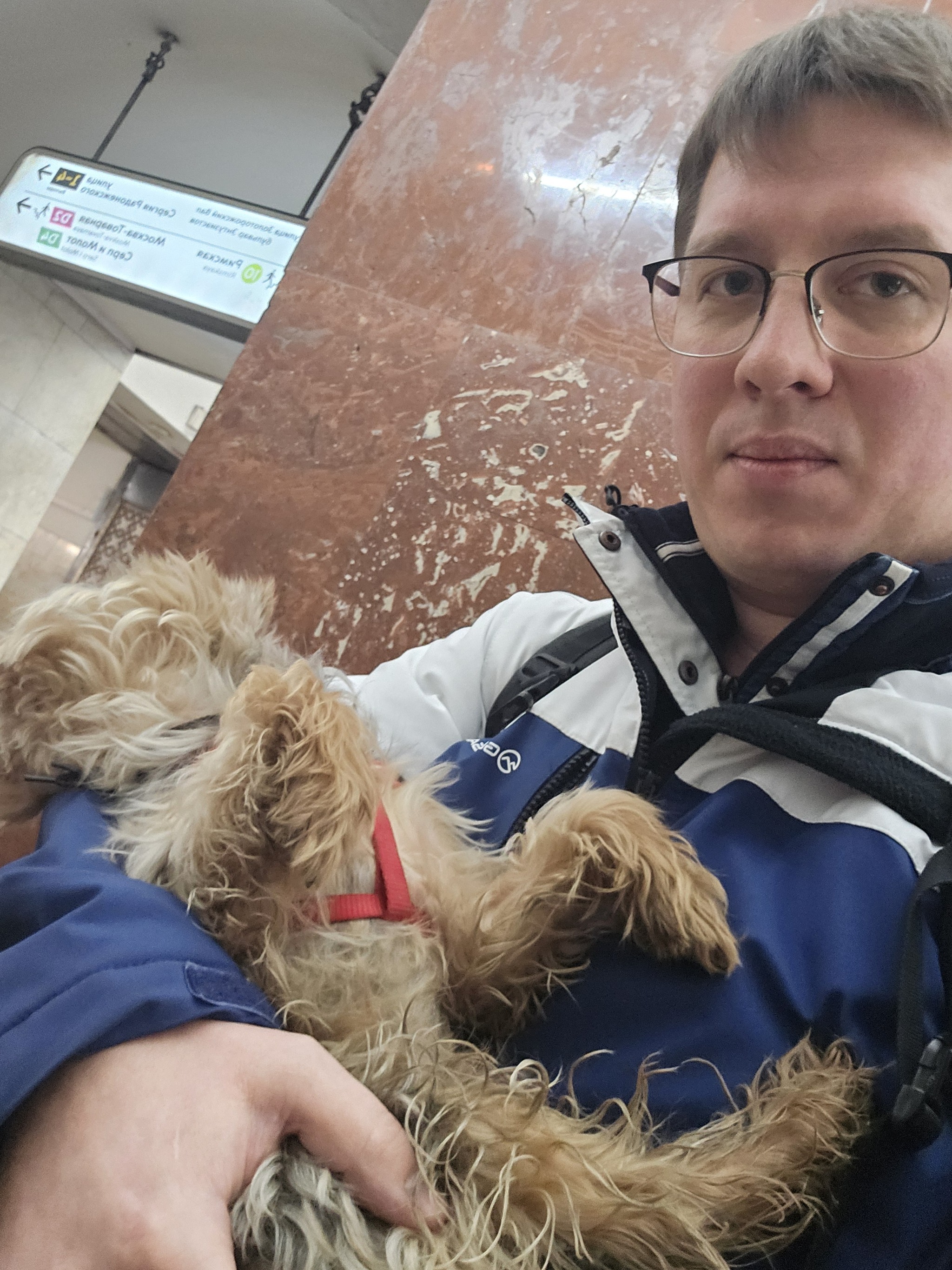 Снимаю наушники, подхожу, беру песика на руки и иду к выходу, успокаивая граждан, что дождусь хозяина на следующей станции, он наверняка поедет следом. Почему-то был уверен, что мужик поедет за нами.
