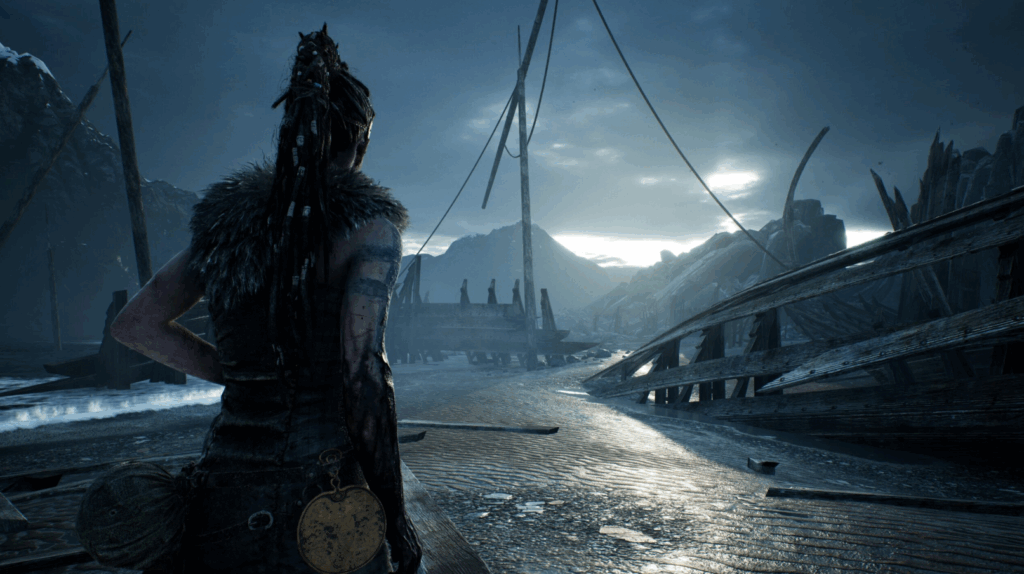 Игра соединяет кельтские и исландские образы с ощущением тотального ужаса. Вы чувствуете преследование, слышите голоса - и всё это не часть геймплея, а часть самой героини.