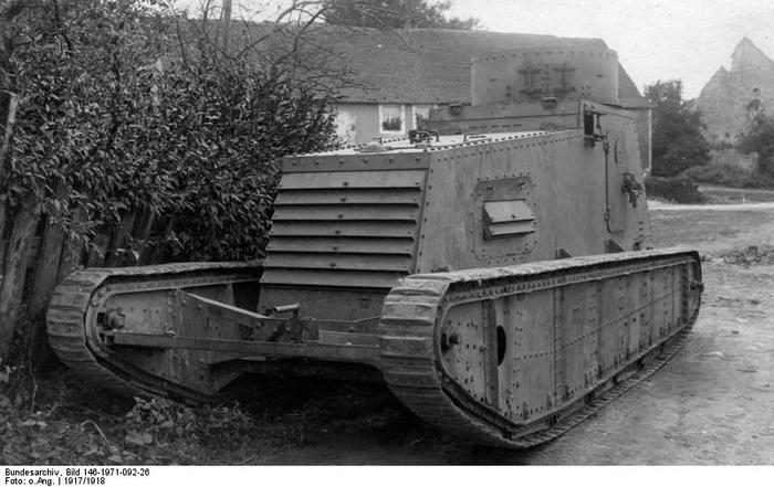 В попытке не отстать от англичан и французов в Германии разработали танк A7V — здоровенный параллелепипед длиной в 7,3, высотой в 3,3 и шириной в 3 метра и весом в 30 тонн.