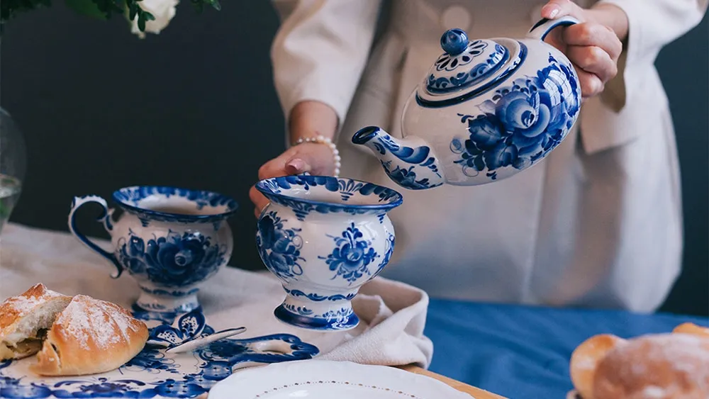 Но жители Гжели поэтично говорят, что во всем виновато небо – оно здесь настолько синее и яркое, что так и хочется перенести эту красоту на хрупкий фарфор. Примечательно, что самый популярный гжельский узор розу здесь ласково называют Агашкой. В период расцвета промысла среди мастериц было много крестьянок по имени Агафья.