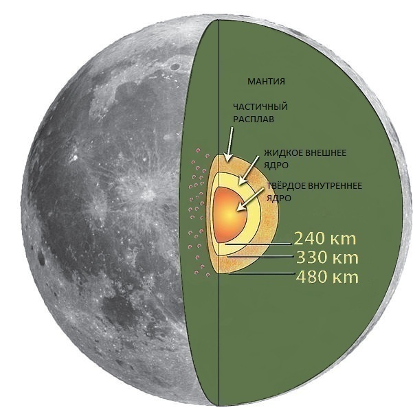 Луна имеет не круглую и не сферическую форму,а форму в виде яйца.Если вы выйдете на улицу и взгляните наверх,то один из небольших концов будет направлен прямо на вас.А центр массы Луны не совпадает с геометрическим центром данного спутника.Он расположен на расстоянии около 2 километров от центра.