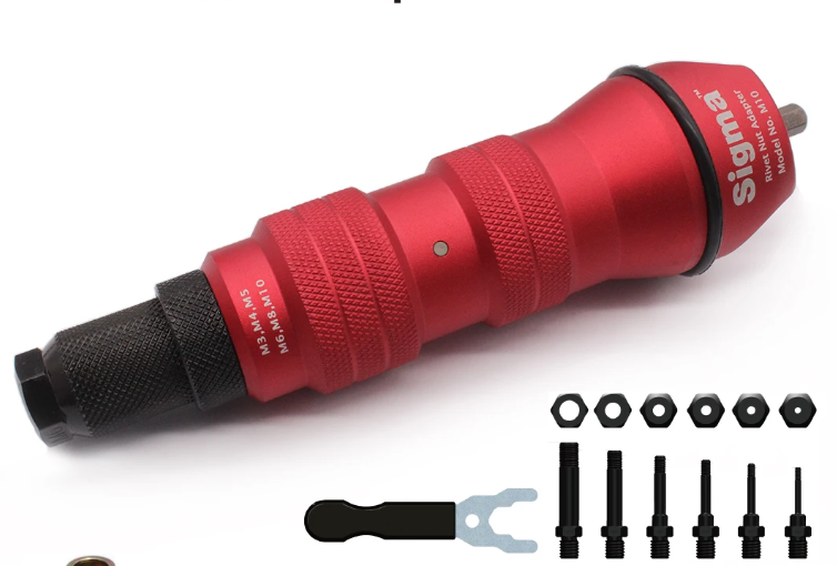 Этот инструмент представляет собой рациональное решение для тех, кто хочет расширить возможности обычного шуруповёрта или дрели. Простое подключение через стандартный 1/4-дюймовый квадрат превращает ваш электроинструмент в полноценный заклепочник, способный устанавливать резьбовые втулки без дополнительных приспособлений.