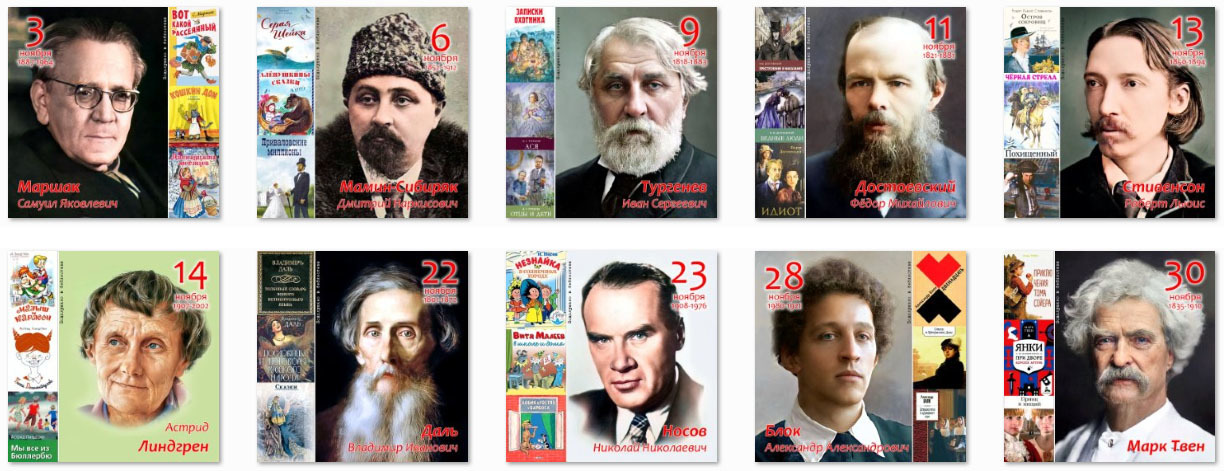 6 tashawish 3 года назад 10 знаменательных дат ноября Спасибо за внимание!Материал подготовила (дизайн) #tashawish специально для проекта "Подслушано в библиотеке" Иллюстрации для коллажей взяты из свободного доступа интернета [моё] Писатели Библиотека Литература Самуил Маршак Иван Тургенев Федор Достоевский Николай Носов Длиннопост Владимир Даль Александр Блок Ещё 0