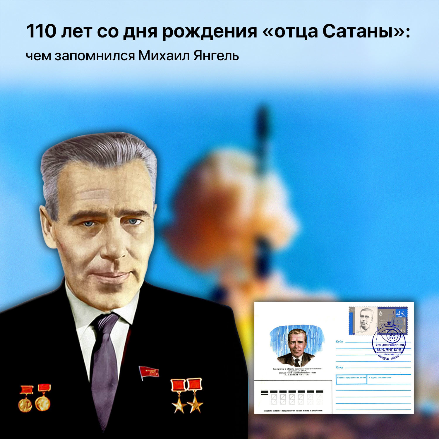 25 октября 1911 года родился Янгель Михаил Кузьмич — советский конструктор самолётов, а потом и ракетно-космических комплексов. Придя в ракетостроение уже состоявшимся инженером в 1950 году, был назначен замом Сергея Королёва в НИИ-88. В 1954 году Янгеля переводят в новообразованное ОКБ-586 (сейчас КБ «Южное») в Днепропетровске, где он встал во главе предприятия и проработал до конца жизни.