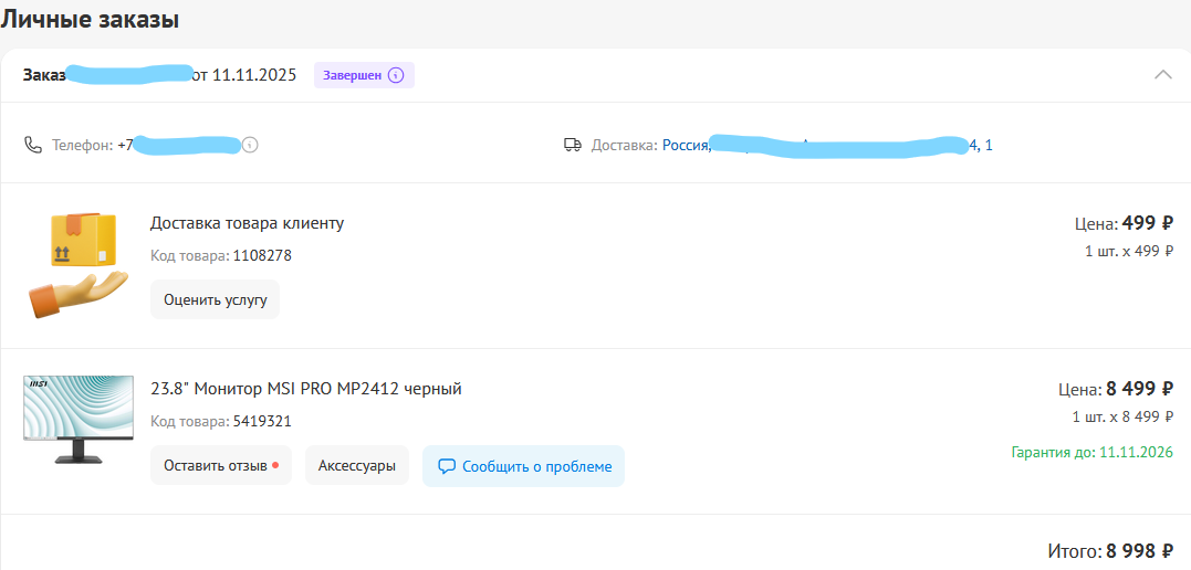 Так получилось, что на работу срочно потребовался монитор. В ближайшем магазине DNS нашел подходящий, заказал, оплатил, получил. Это было 11 ноября.