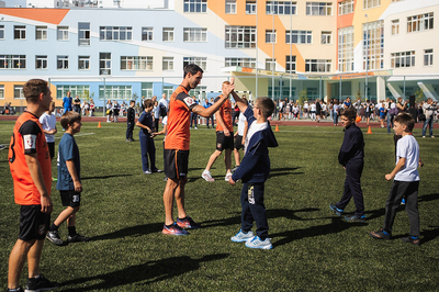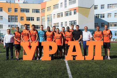 Прошла она 1 сентября 2016 года, в новой школе Академического. 200 учеников 3-5 классов сыграли против 11 игроков "Урала".