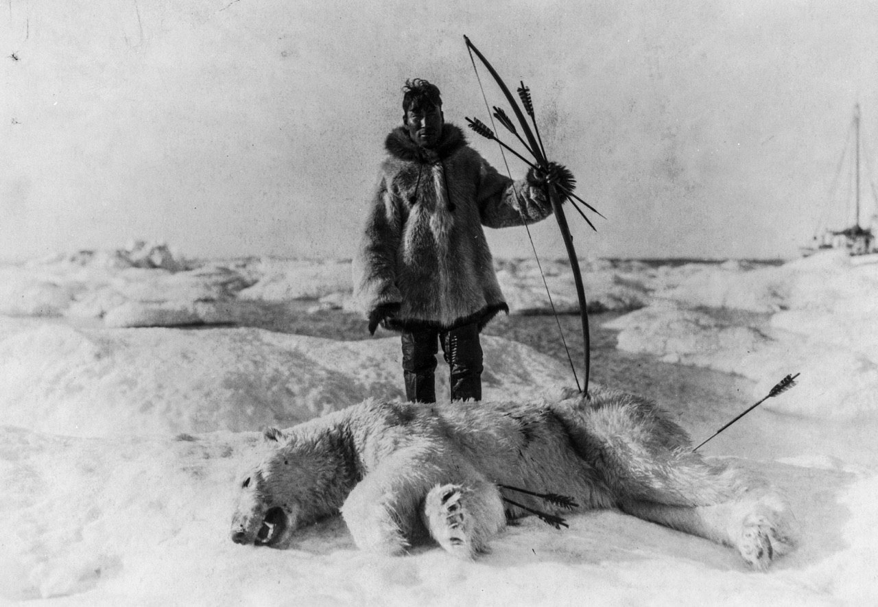 Охотник-эскимос после удачной охоты на белого медведя, 1924 год.